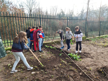 Os meninos do 5ºA e B adoram ir até à horta. Hoje foi a vez de semear ervilhas de quebrar, salsa e cenouras e plantar couves. Também foi preciso mondar. Não está a ser tarefa fácil! Há muitas plantas invasoras.